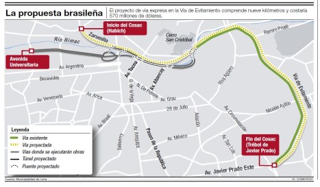 Perú - La nueva vía rápida cubrirá desde el puente Huáscar hasta avenida Universitaria con Morales Duárez | La ciudad de Lima contará próximamente con una nueva Vía Expresa, denominada “Línea Amarilla”, gran parte de la cual correrá por debajo del río Rímac en un túnel de dos kilómetros, anunció hoy el alcalde de la comuna metropolitana, Luis Castañeda Lossio.